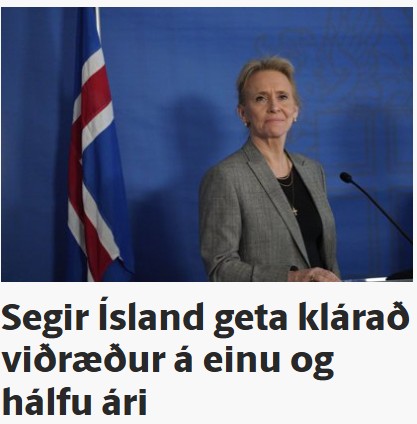 Þá væri fróðlegt í ljósi sögunnar að heyra álit mitt á tímalengd aðlögunarferilsins sem Þorgerður Katrín utanríkisráðherra segir nú að muni eigi verða meira en hálft annað ár.